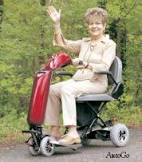 a large middle-aged woman in a “Little Rascal”/motorized cart appears.